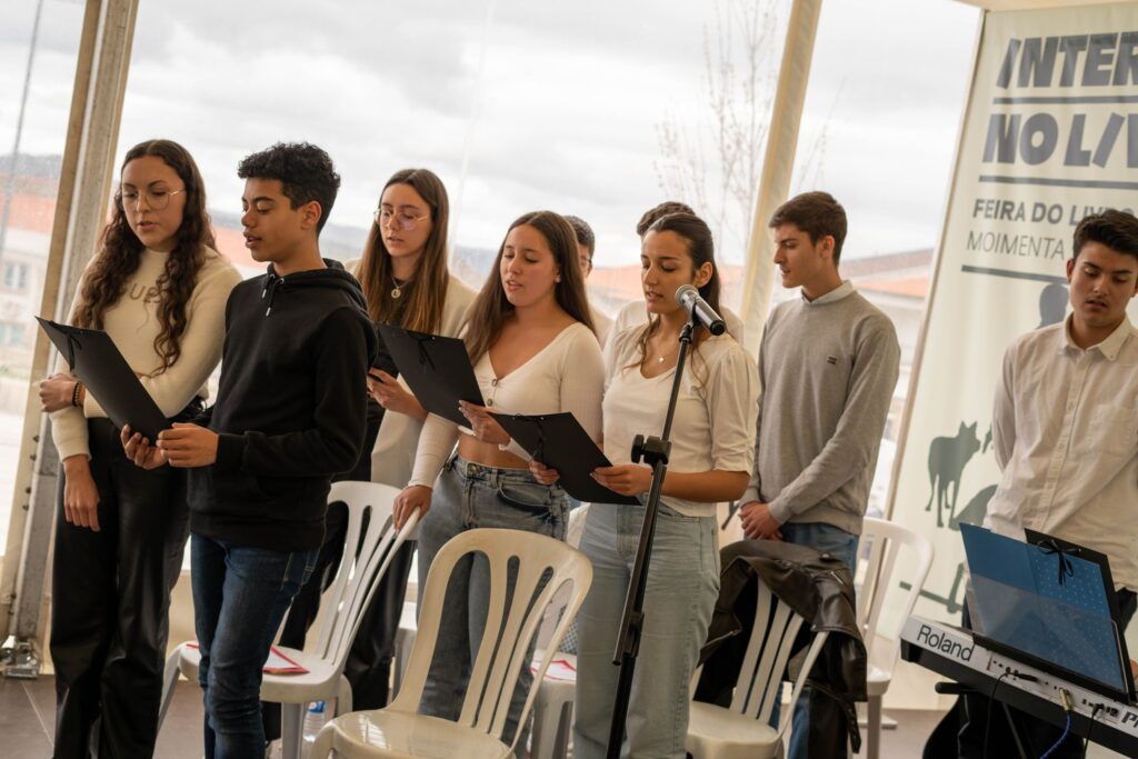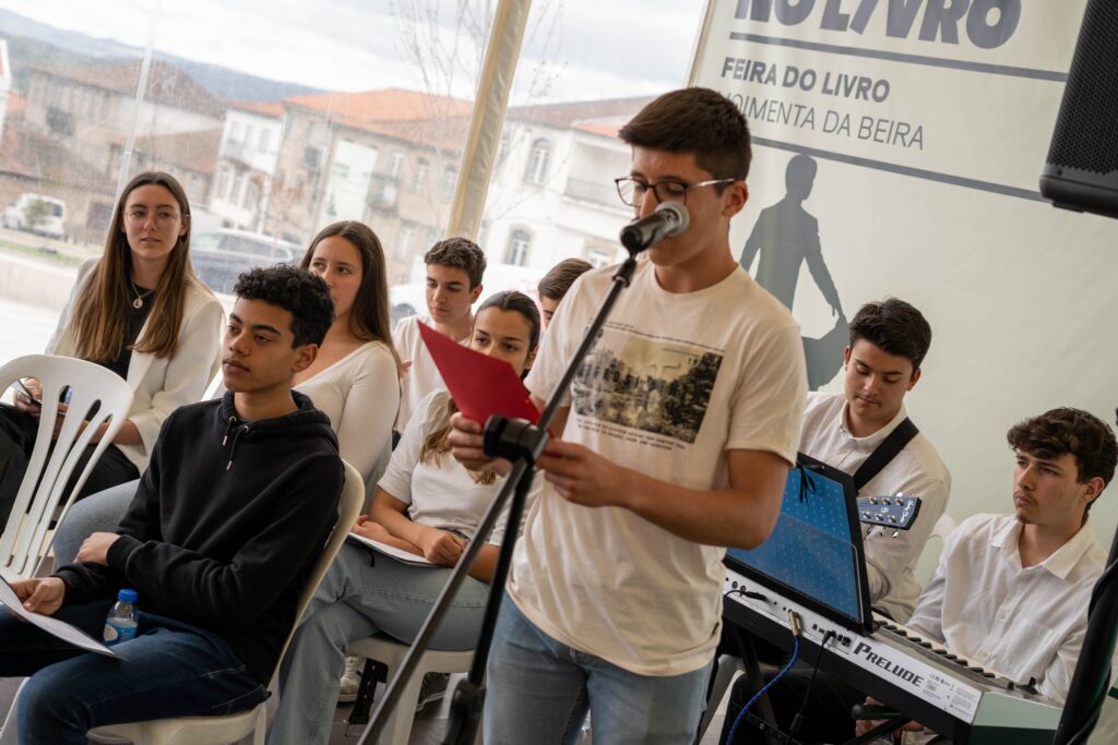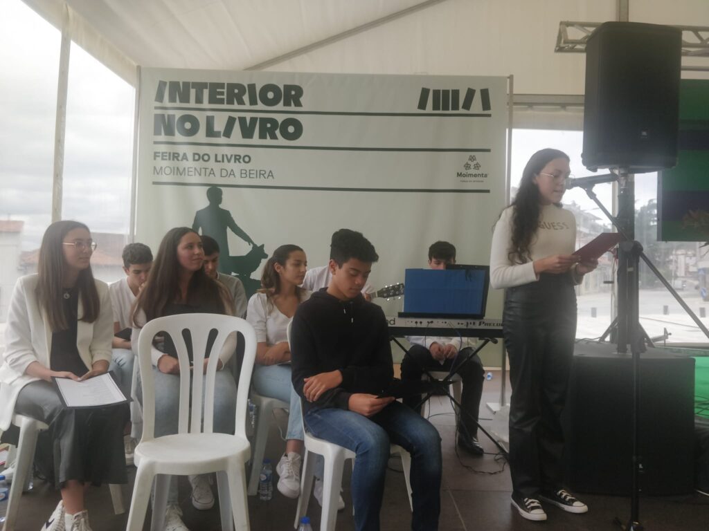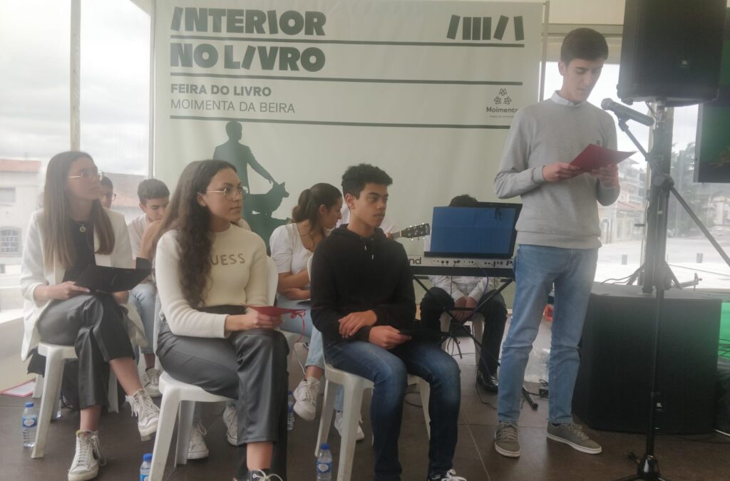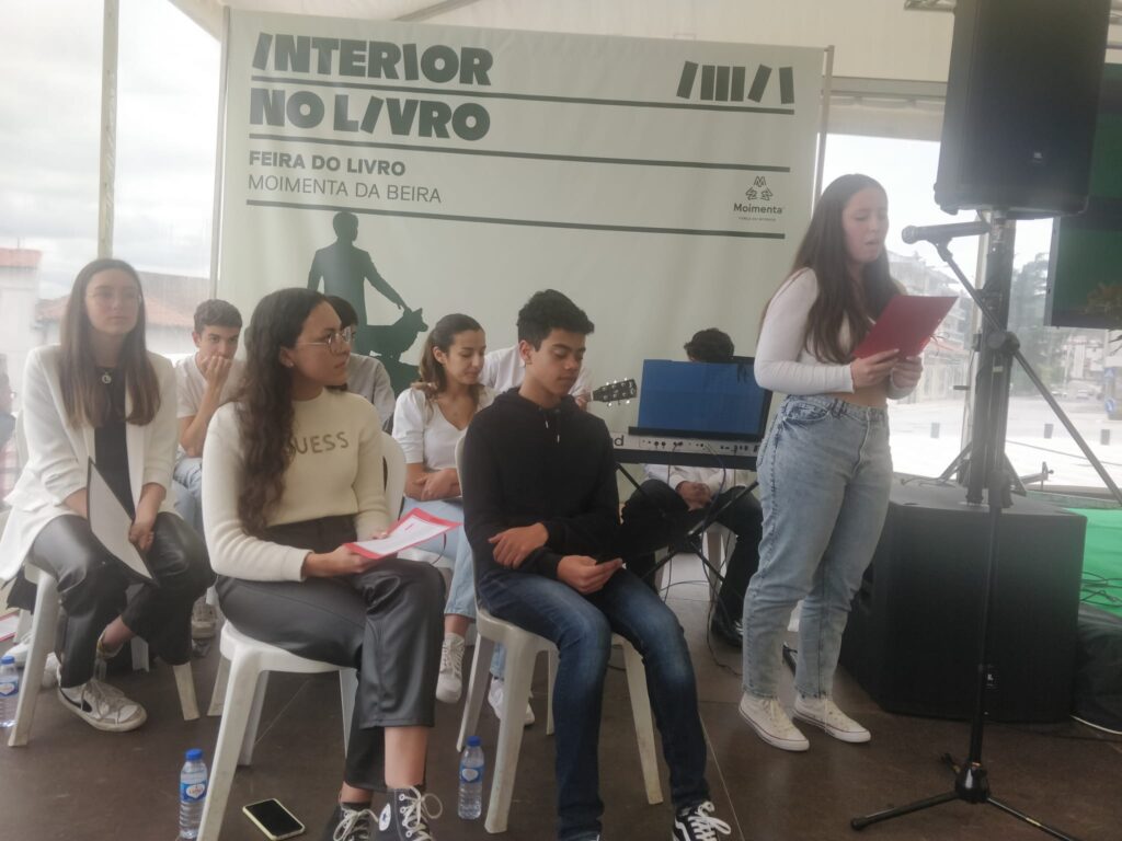 Após a apresentação do livro, alguns alunos do 11ºA do Agrupamento de Escolas, em colaboração com a Biblioteca Escolar, e no âmbito do Projeto “Biblioteca Escolar: 11@LER”, leram excertos de algumas obras do escritor e interpretaram a canção “Someone like you”, da Adele, canção esta referida várias vezes no livro “ Durante a queda aprendi a voar” .