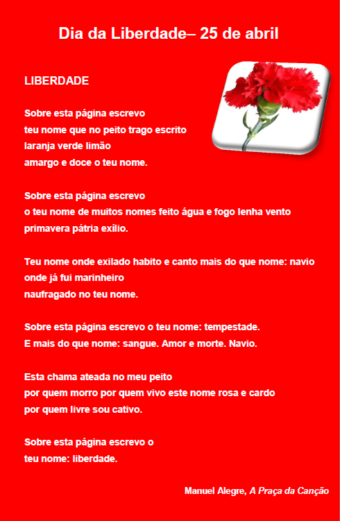 A Revolução de 25 de Abril, também conhecida como Revolução dos Cravos ou Revolução de Abril, refere-se a um acontecimento da história de Portugal, ocorrido a 25 de abril de 1974, que depôs o regime ditatorial do Estado Novo e devolveu a liberdade à população, com a implantação de um regime democrático.