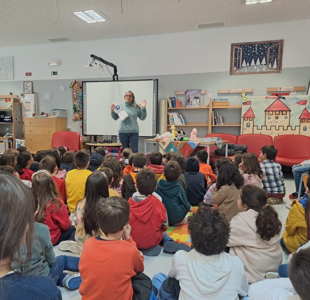 No âmbito da Semana dos Afetos, recebemos, hoje, a escritora Ana Cristina Luz, que encantou os alunos do 1º e 2º anos com as suas histórias e as personagens dos seus livros, feitas em crochet: desde “Gaspar, o ensonado”, passando pelo “O Medo e o Susto” ou “A Festa dos Cravos”, entre outras histórias.